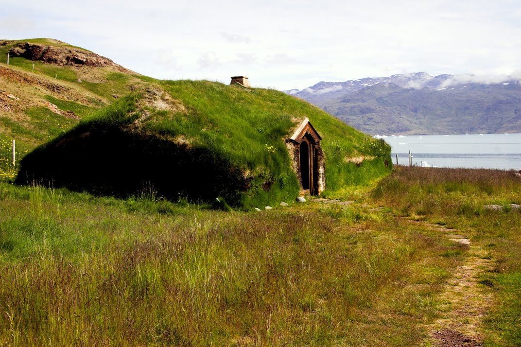 The Vikings brought with them a different style of building – long, low rectangular houses with an A-frame roof covered in thatch or sod. Here’s how I pictured the houses in Thorsbjorg.