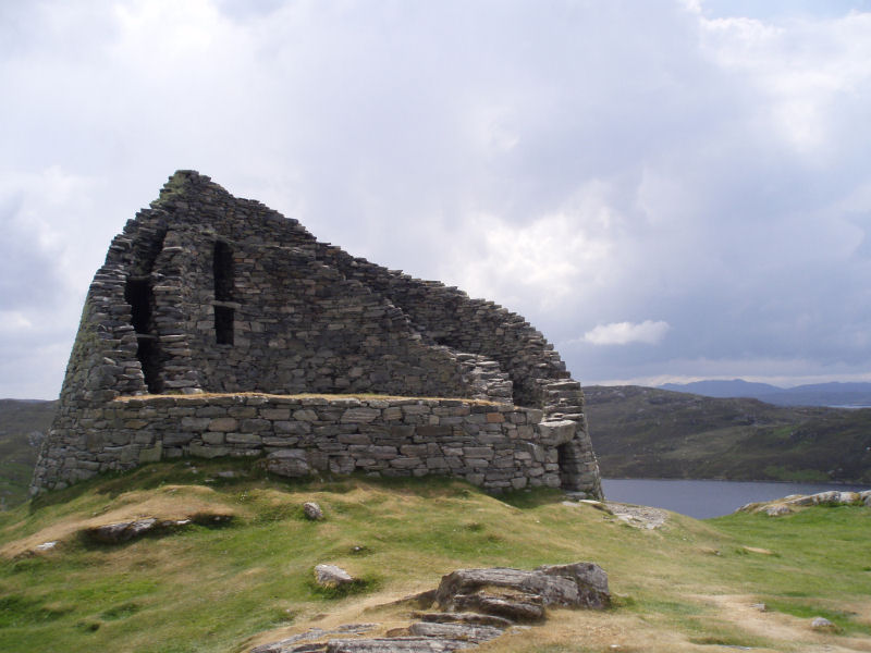 These weren’t much in use at the time of Daughters and Sons of Alba. But plenty of them remained from older times, most of them in ruins. I put a ruined broch in Dun na Cloich Leith: Aigneis, Ealasaid, and Eithne’s home. Like many of these circular towers, this one was likely plundered for its building stone over time. Brochs were made by the ancient Picts for defence and consisted of a double wall of unmortared stone.