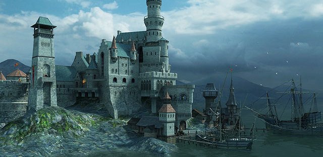 Built of limestone and granite imported from the sea coast, the castle looks grey most of the time, though in the right light it looks almost golden. It is built in a cluster of towers and halls, encircled by two protective walls with gates that stand open except in time of war. Its great hall is large enough to hold all of the great lords of the kingdom, and many common folk as well.